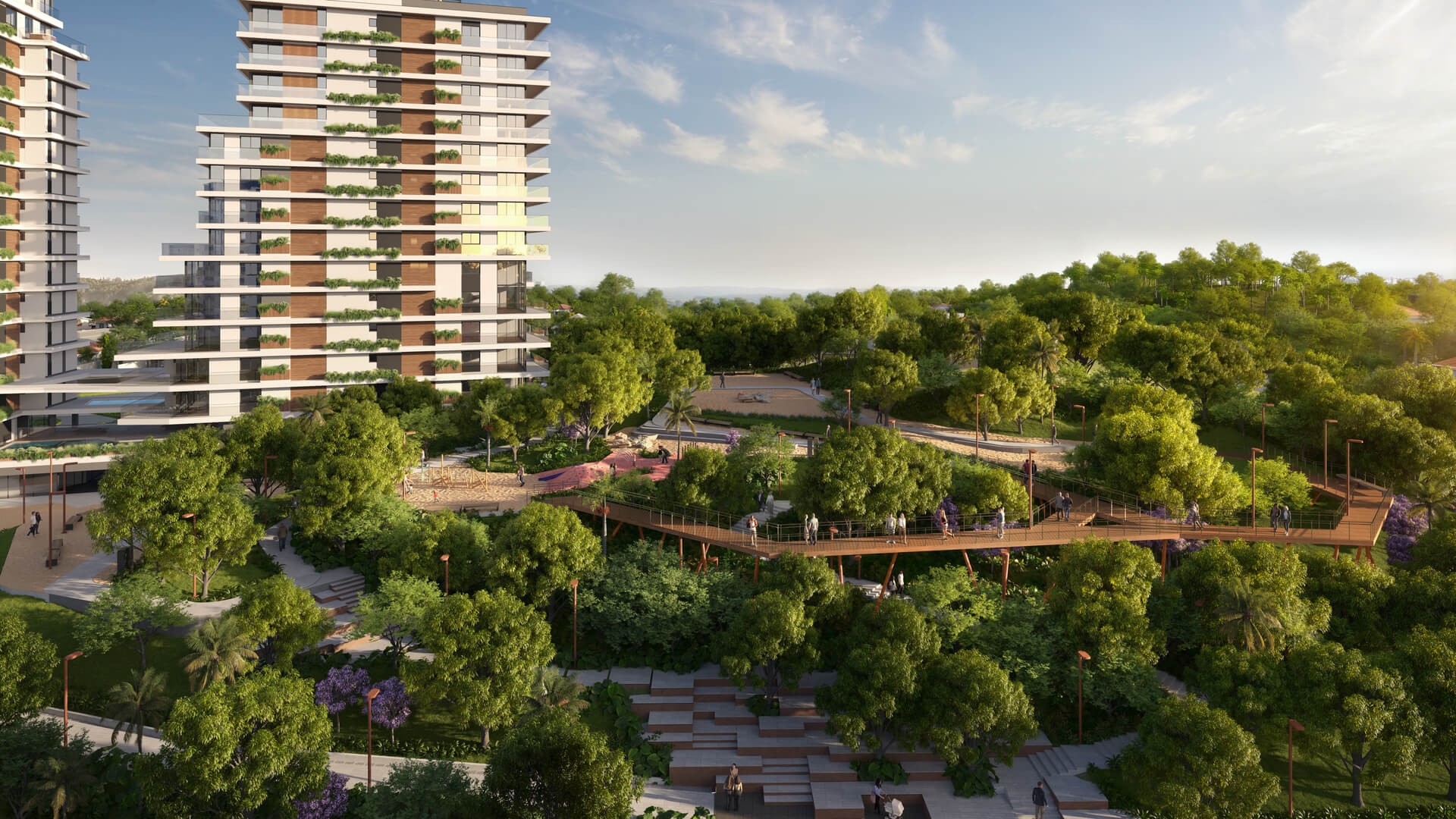 A Cidade das Águas está totalmente integrada à natureza exuberante desta região de Joinville. Nossas quadras, parque e praças são ricamente arborizadas e se estendem até as encostas da Mata Atlântica, que será preservada e enriquecida com árvores nativas.